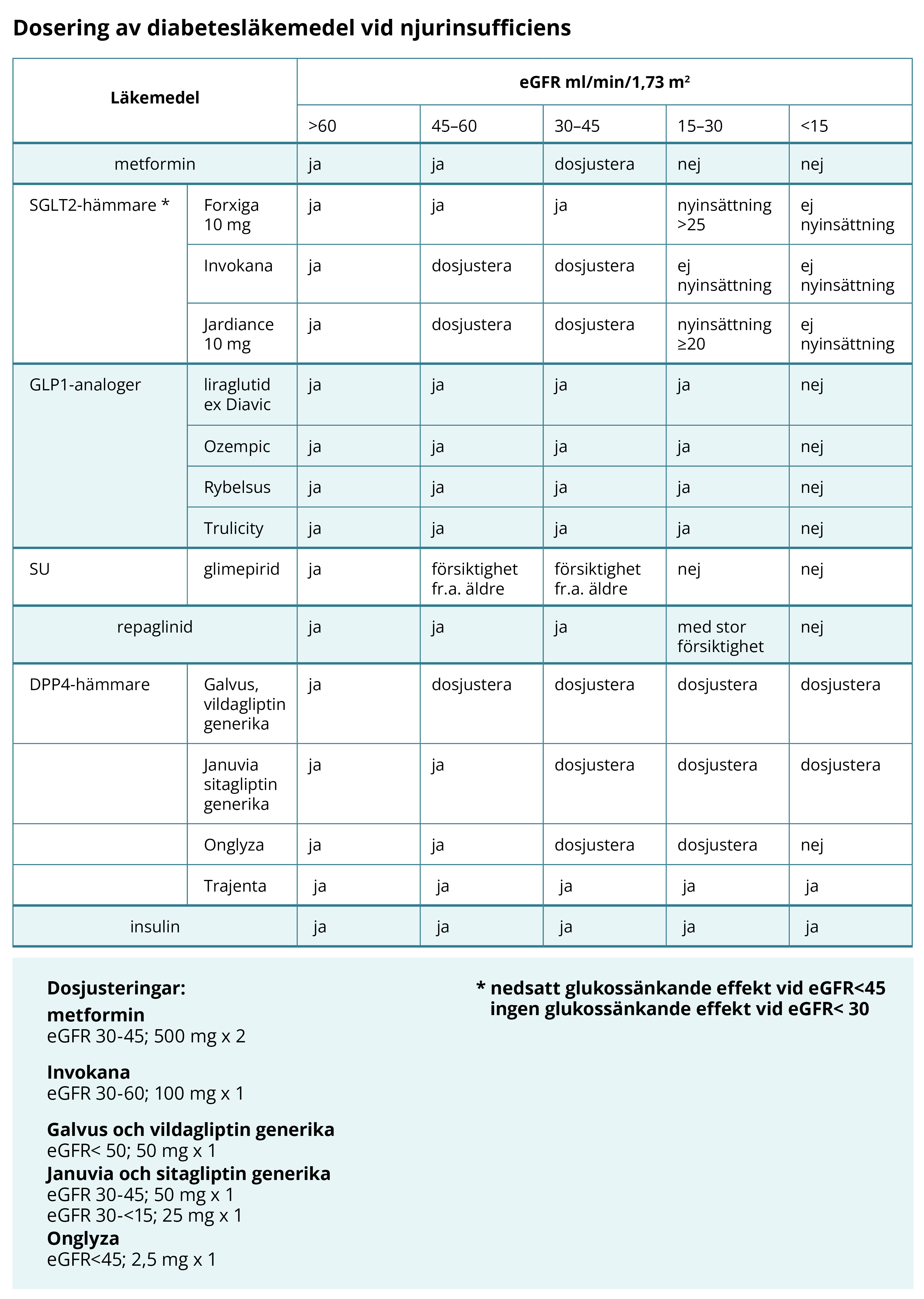 Dosering av diabetesläkemedel vid njurinsufficiens Skånelistans rekommenderade läkemedel och Bakgrundsmaterial. Dosering av diabetesläkemedel vid njurinsufficiens (pdf)